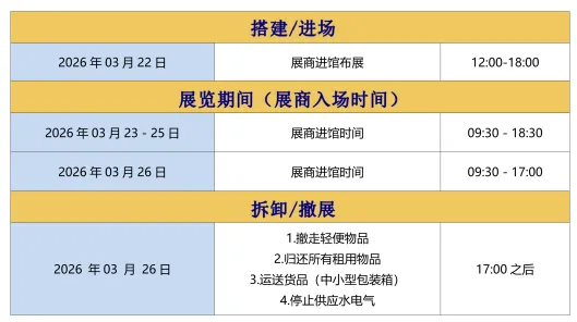 > 撤展时请将参展物品及样品处理完毕,将展位回复至布展前的样子,以免产生垃圾处理费。