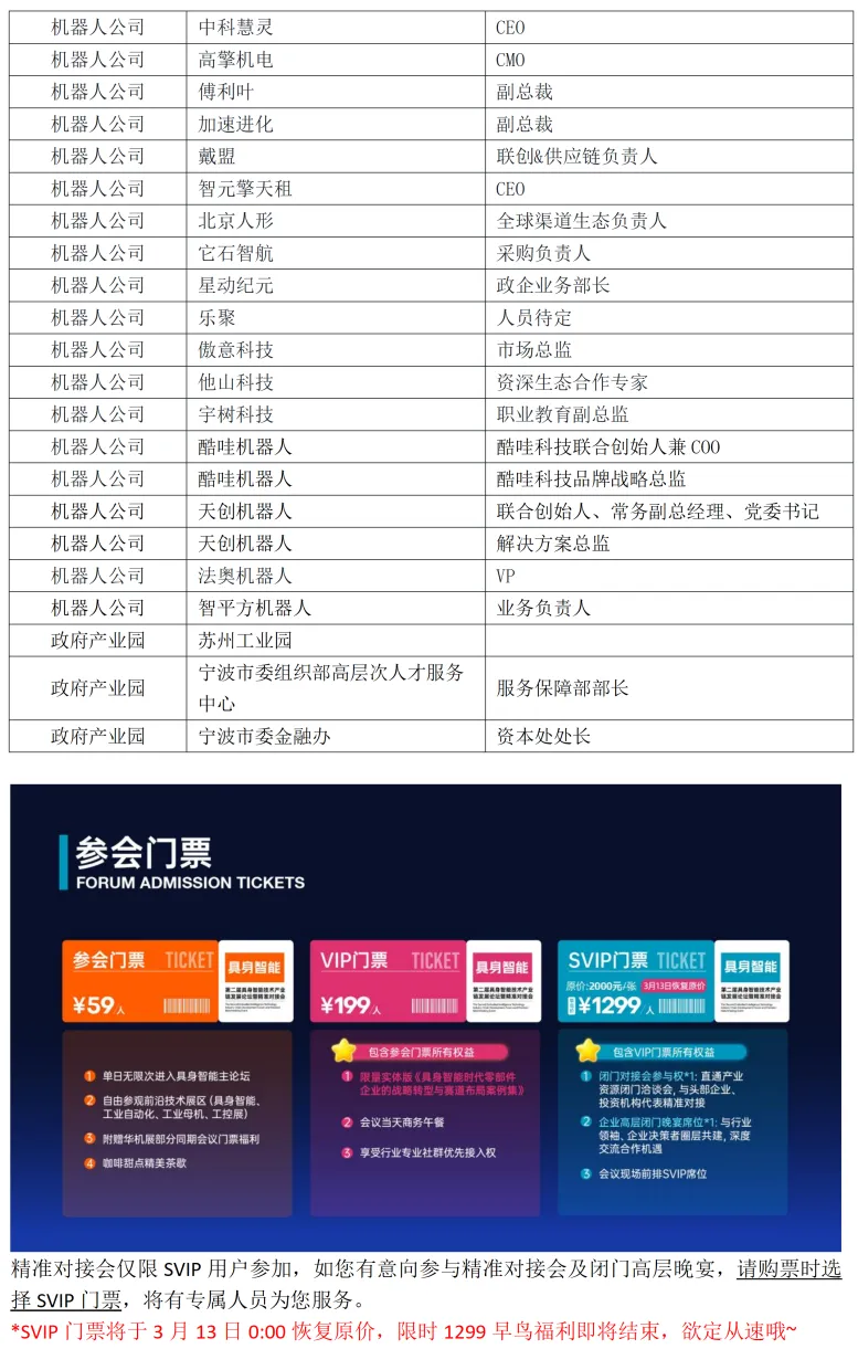 ⏰23日下午更有精准对接会+闭门高层晚宴,已有5️⃣0️⃣+上市公司、外资企业、投资方决策者确认参会(含硬件、软件、场景方、本体企业、政府产业园)