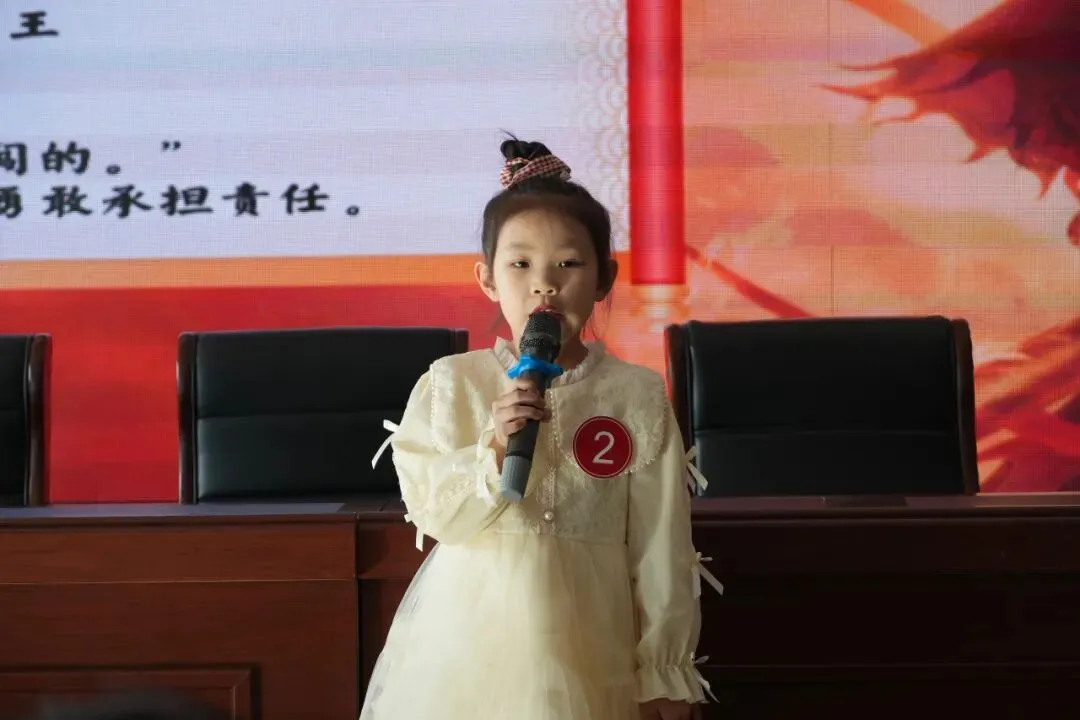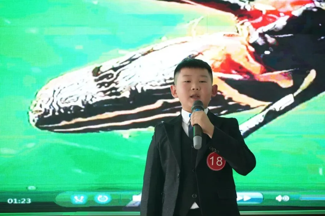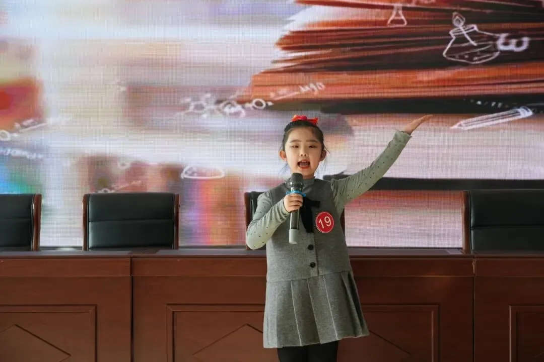 开学第二周,校级决赛在学校大会议室举行。根据学生年龄特点和认知水平,比赛分低年级组和高年级组两场进行,既体现了因材施评的专业考量,又让不同年段的阅读风采得以充分展现。
