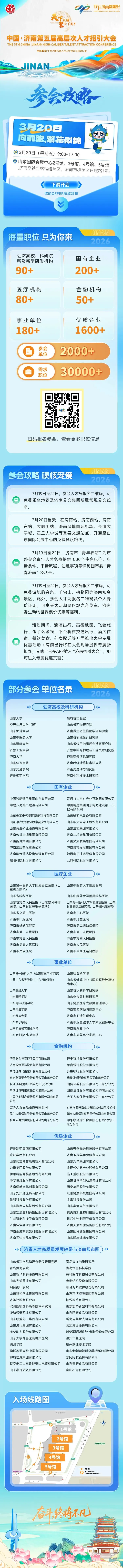 春风拂泉城,英才赴新程,3月20日,山东国际会展中心,3万多个机遇虚位以待。
