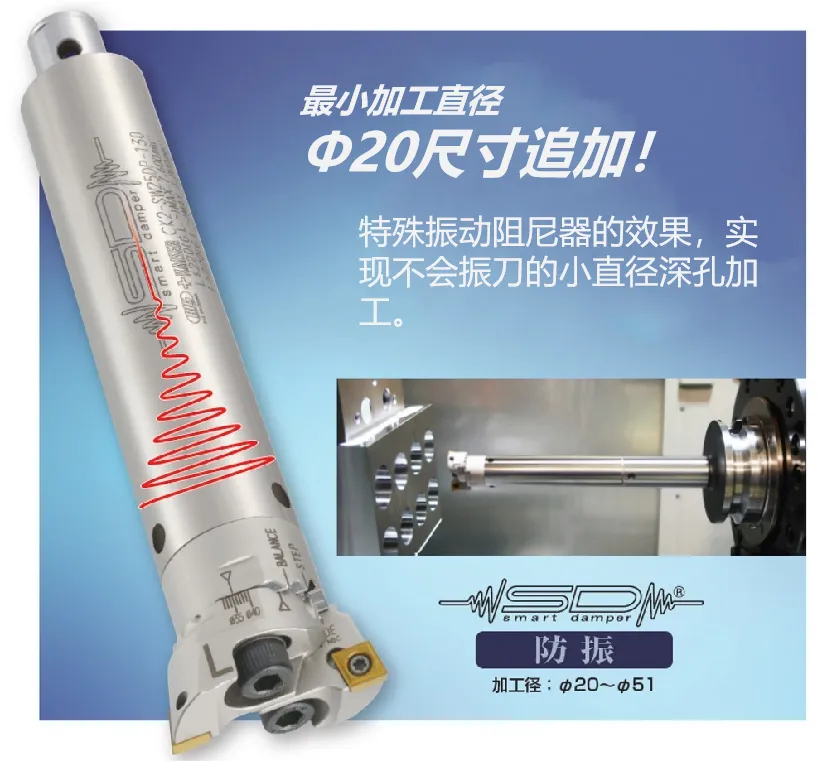 加工直径φ20-φ51mm具有防振机构的粗镗刀,粗镗效率显著提高。
