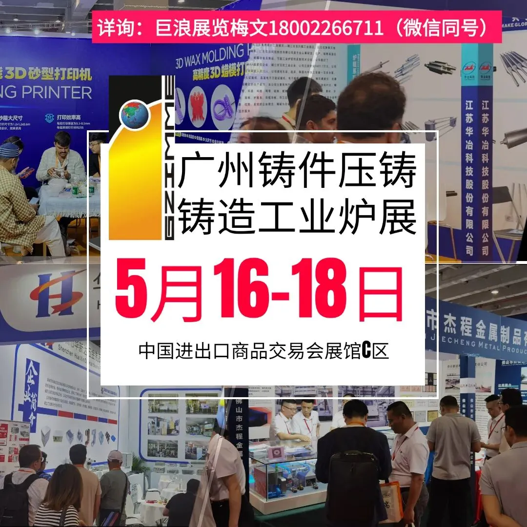 广州国际压铸、铸造及工业炉展览会由广州巨浪展览策划有限公司主办。2025年第二十五展会联合韩国压铸工业合作社、韩国钢铁协会、天津金属材料学会、印度的Strategise.in,印度的yatra...等全球32个国家的专业协会和团体,组建联合展团到会参展参观。