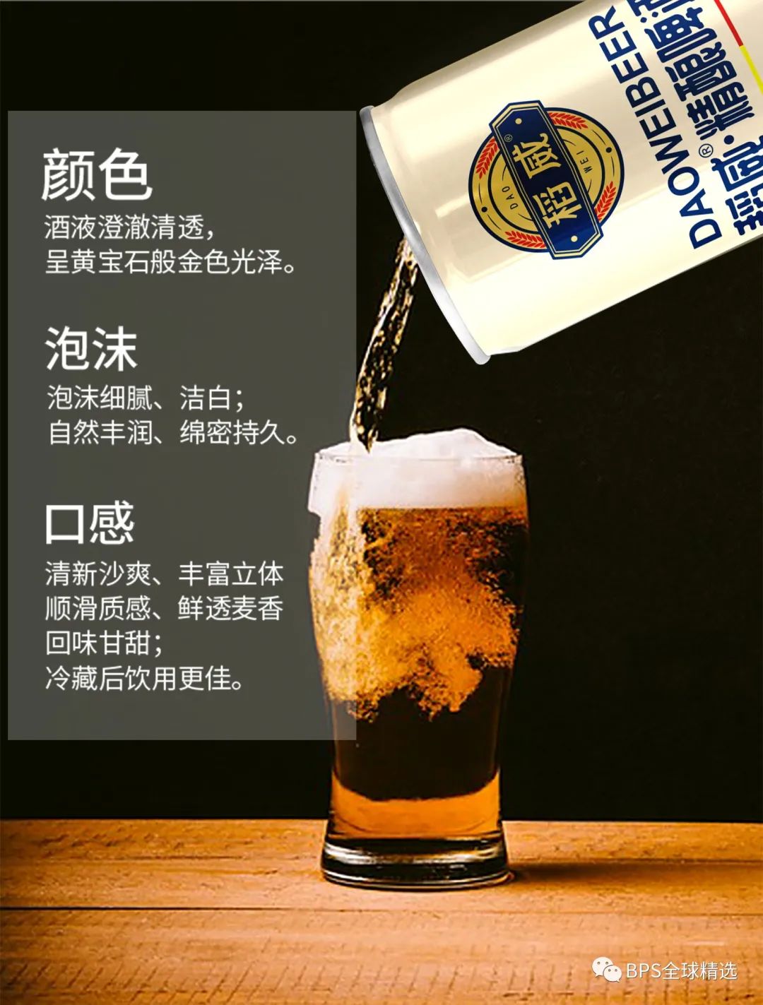 清新沙爽、丰富立体、顺滑质感、鲜透麦香、回味甘甜;冷藏后饮用更佳。