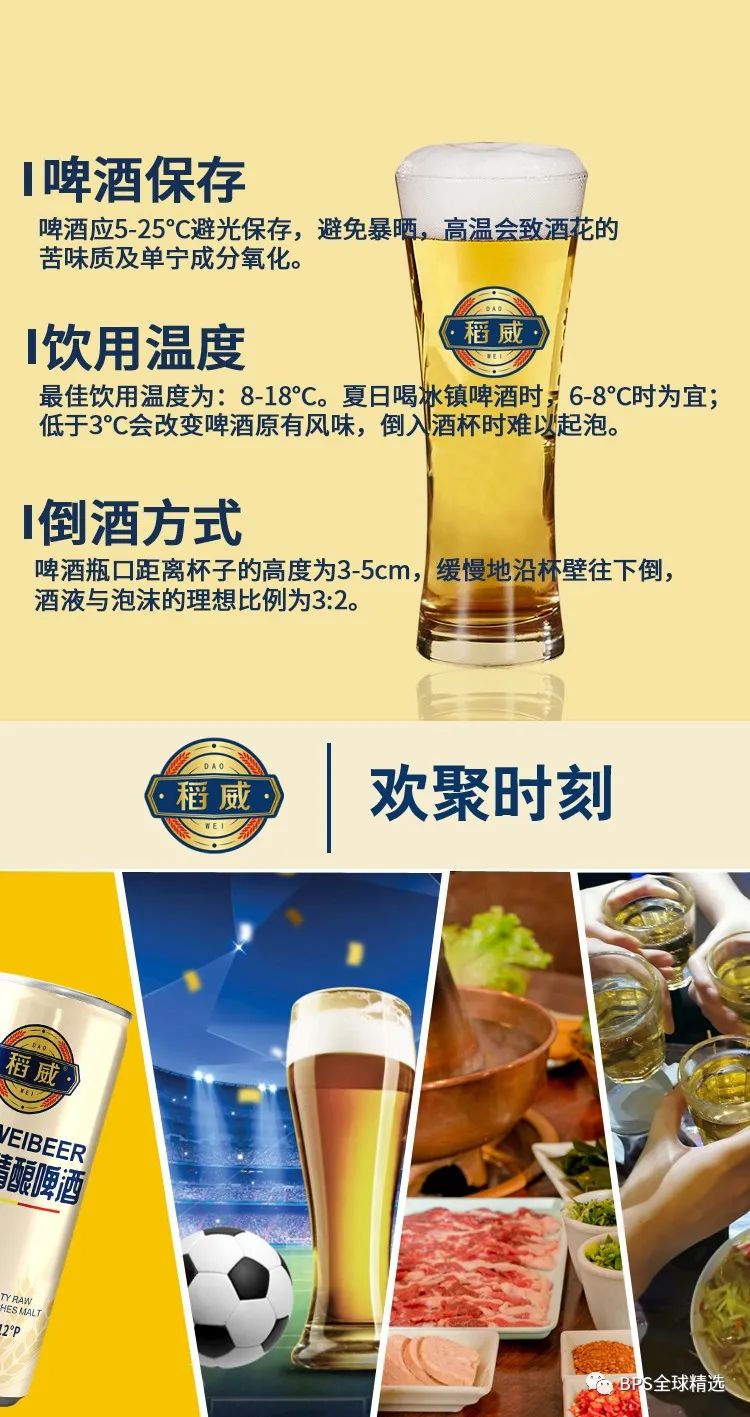 先来来说说酒精度麦芽度,麦芽度越高,用料成本也更高,大部分工业啤酒麦芽度为11度或者10度左右,我们的是麦芽度12度,我们稻威做的是高品质啤酒;再来说说酒的质量