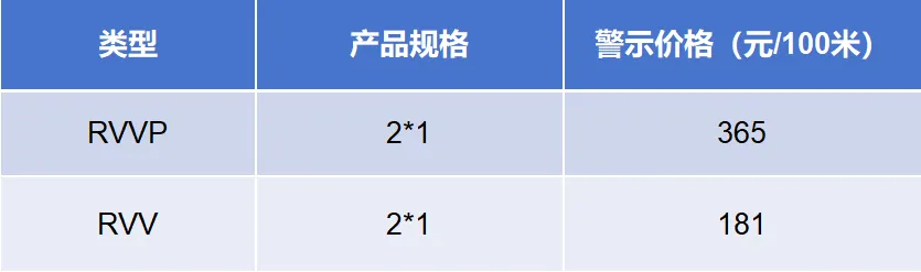 值得注意的是,这次行业自检对RVVP-2*1、RVV-2*1都计算了材料成本价格,并根据市场售卖价格与成本价格做了分析对比。