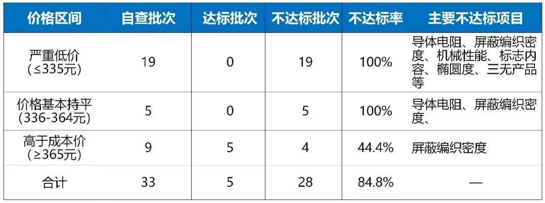 报告显示,本次抽检共发现38家企业产品存在质量问题,核心问题集中在导体电阻超标、编织密度不达标等关键安全指标,暴露出部分企业偷工减料、主体责任缺失及认证监管漏洞。