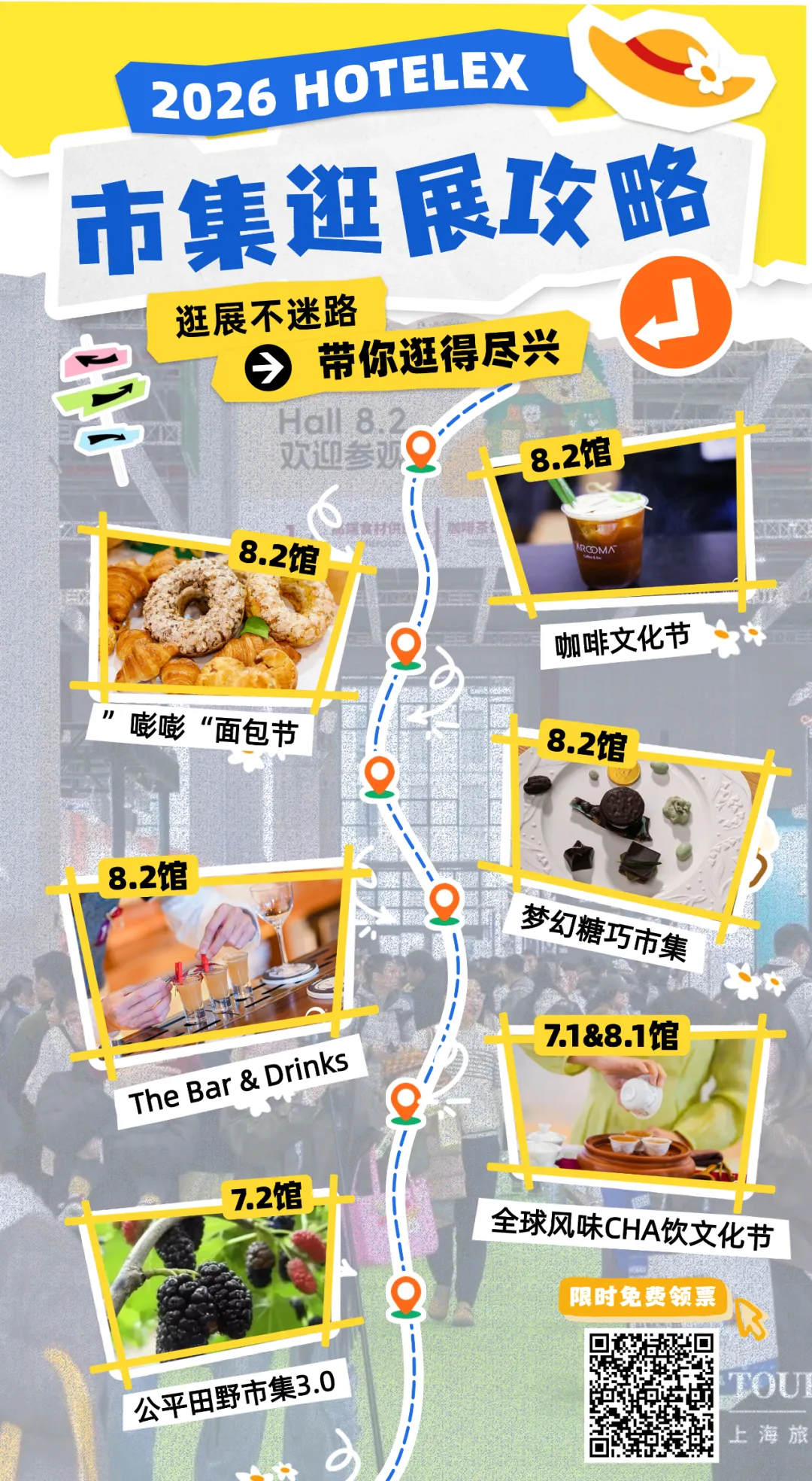 本届展会规模达40万平方米,汇聚3000+展商,预计迎来30万+全球专业观众。而在展会的核心区域,六大主题市集将同步开启——2026HOTELEX上海国际咖啡文化节、2026HOTELEX“嘭嘭”面包节、梦幻糖巧市集、The Bar & Drinks 上海国际酒吧西餐及酒饮展、全球风味CHA饮文化节、公平田野市集3.0,共同勾勒出一幅春日限定的餐饮生活图景。