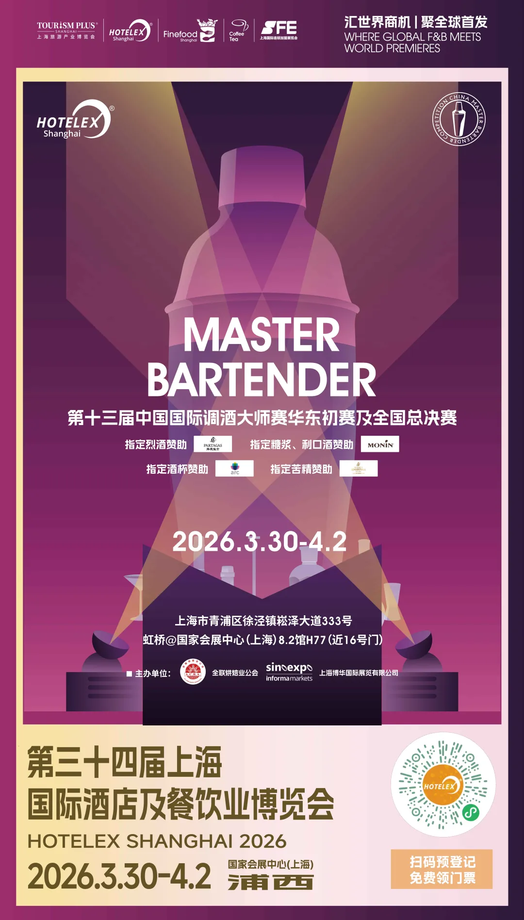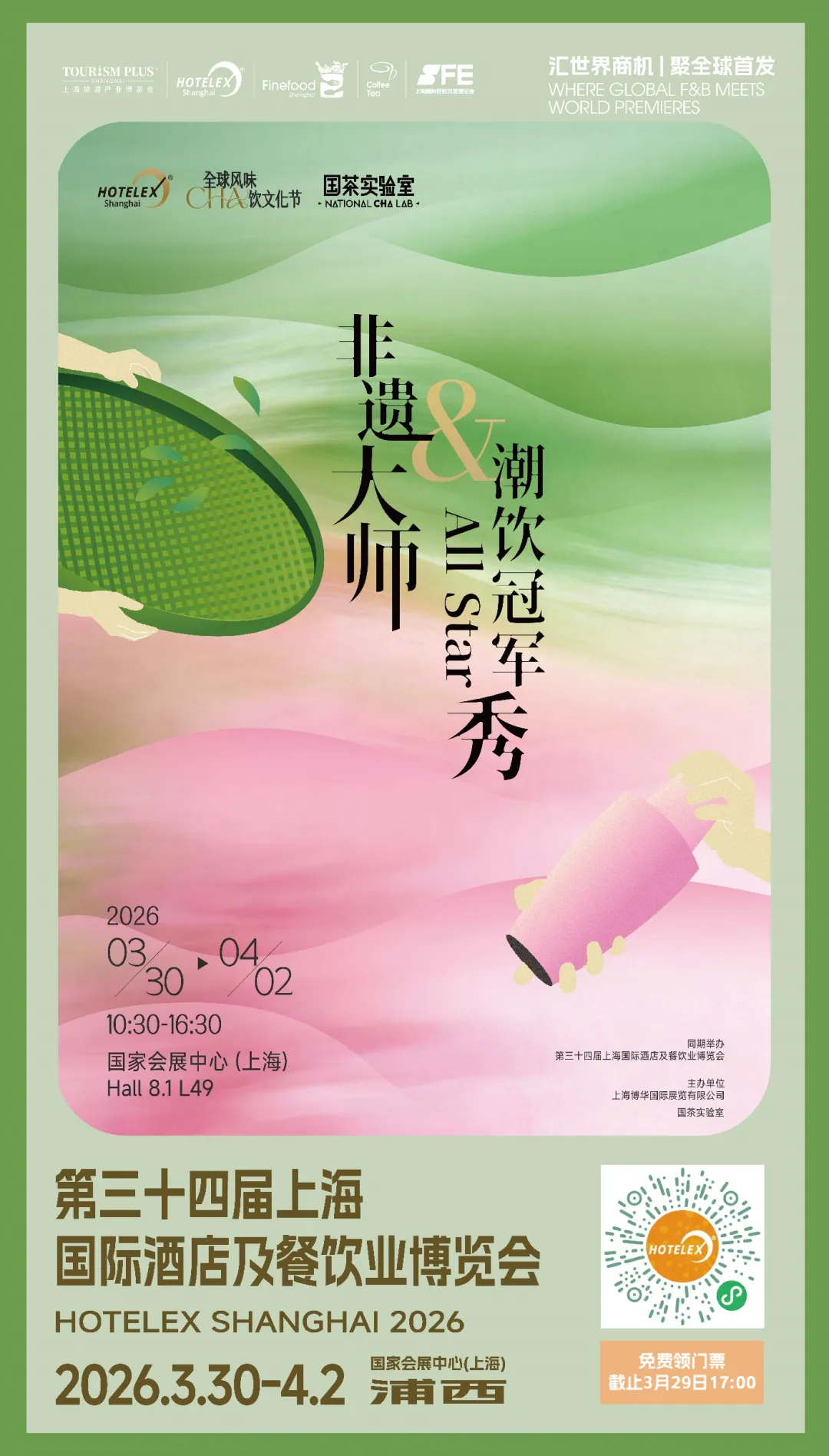 这些与生活息息相关的味道,即将在2026年3月30日至4月2日,齐聚国家会展中心(上海·虹桥),在第三十四届上海国际酒店及餐饮业博览会(HOTELEX Shanghai 2026)上集中亮相。