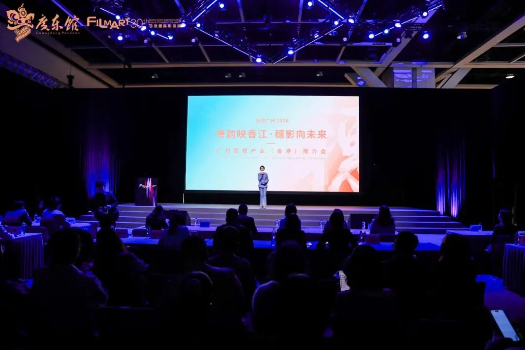 2026年3月18日,由广州市文化广电旅游局主办,国家对外文化贸易基地(广州)协办的粤韵映香江·穗影向未来广州影视产业(香港)推介会在香港国际影视展举行,广东省影视产业服务平台在会上进行推介。