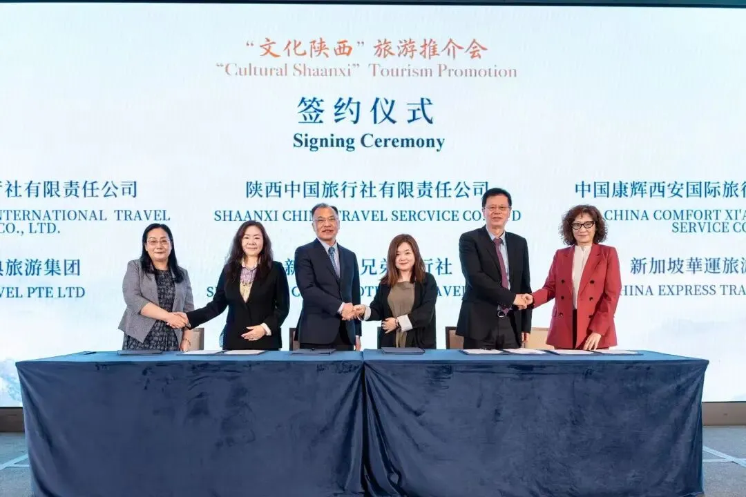 陕西中旅曲江分公司总经理张琳代表陕西旅游企业,重点推介了陕西经典旅游线路及特色文旅产品,全方位展现“文化陕西”的独特魅力。活动核心环节中,陕西中旅成功与新加坡最大旅行社曾兄弟旅行社签署战略合作协议,双方将在客源互送、产品共创等方面深度合作,打通陕新旅游互通渠道。