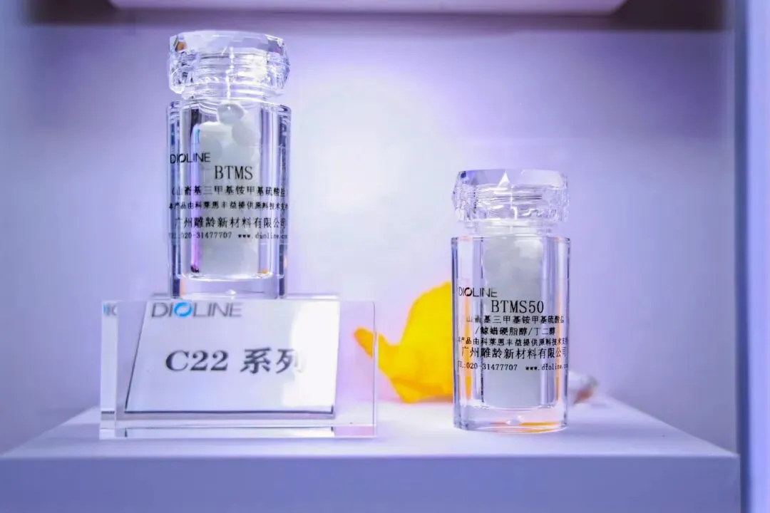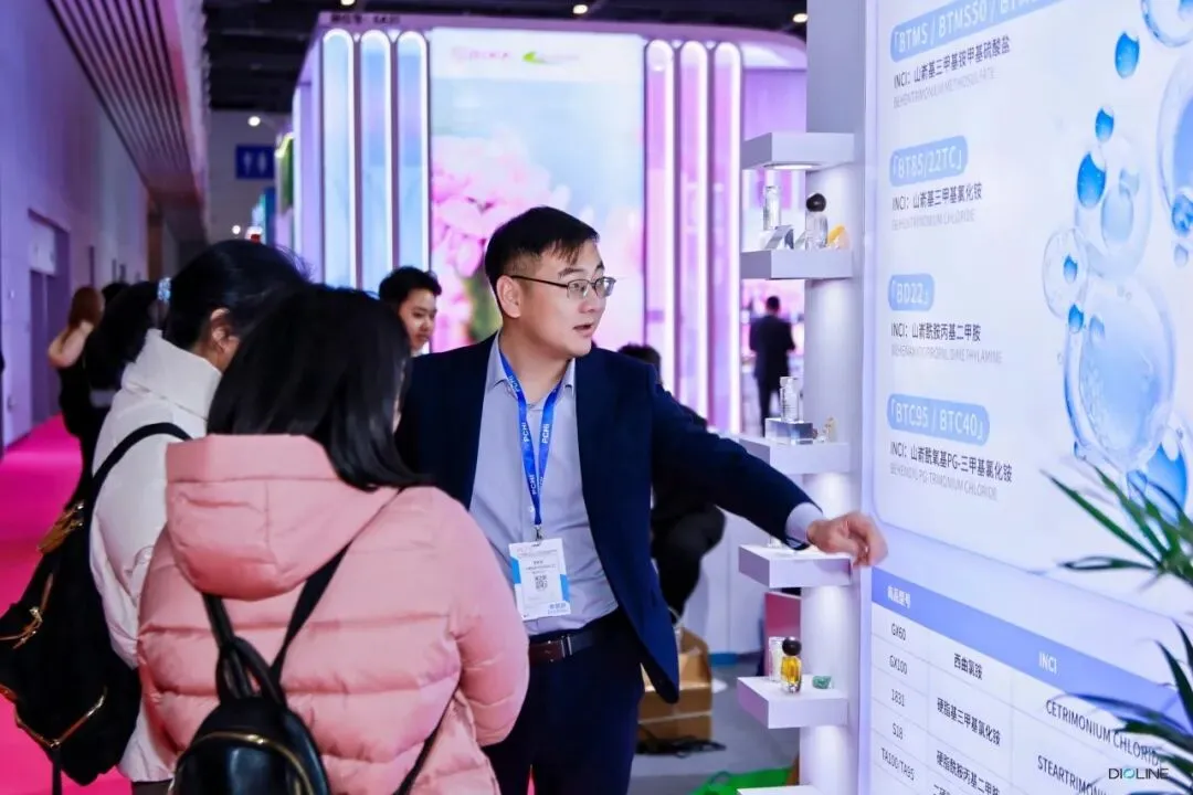此次参展,广州雕龄带来了全系列核心产品与定制化洗、护、沐解决方案,核心展品涵盖阳离子表面活性剂、阳离子瓜尔胶、仿生磷脂、蛋白以及新上市的蛋白氨基酸等多个系列。