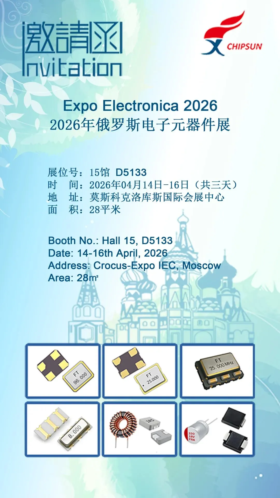 2026年俄罗斯电子元器件展览会如期而至,将于4月14日至16日在莫斯科克洛库斯会展中心盛大开幕。福浪集团●炬烜科技全体同仁诚邀客户朋友们莅临展位参观交流,洽谈合作。展位号:15馆D5133