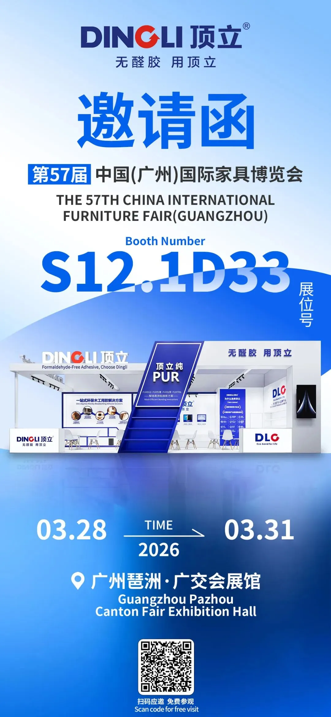 Spring is in the air, and business opportunities are approaching! The 57th China (Guangzhou) International Furniture Fair 2026 is grandly kicking off. Its Production Equipment & Accessories Exhibition will be held at Area B of Canton Fair Complex (No.382 Yuejiang Middle Road, Haizhu District, Guangzhou) from March 28 to 31, 2026. As a benchmark brand in the woodworking adhesive industry, Dingli is making a stunning appearance with a full range of adhesive solutions, and sincerely invites all industry colleagues to visit our booth to exchange insights on industry development and explore new possibilities for efficient bonding!
