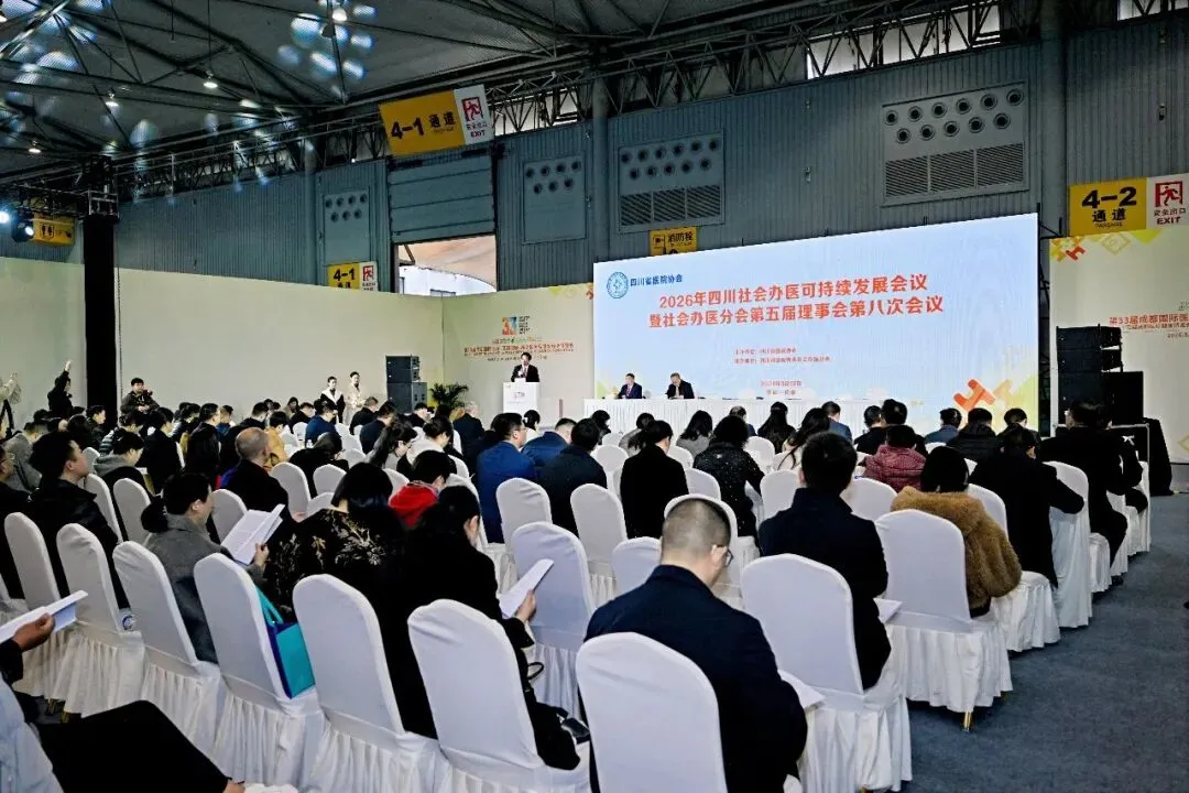 2026年四川社会办医可持续发展会议在4号馆会议室上午举行。会上发布四川省医院协会社会办医优秀单位并授牌,四川现代医院、成都双流海尔森老年病医院、自贡荣县新城医院、峨眉山佛光医院进行了经验交流与分享。