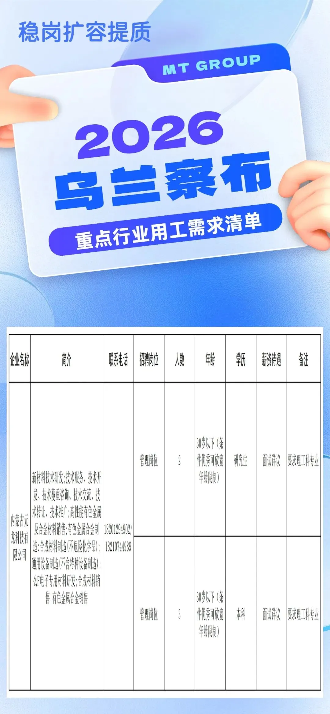 稳岗扩容提质|2026年乌兰察布市重点行业企业用工需求清单(第49期)