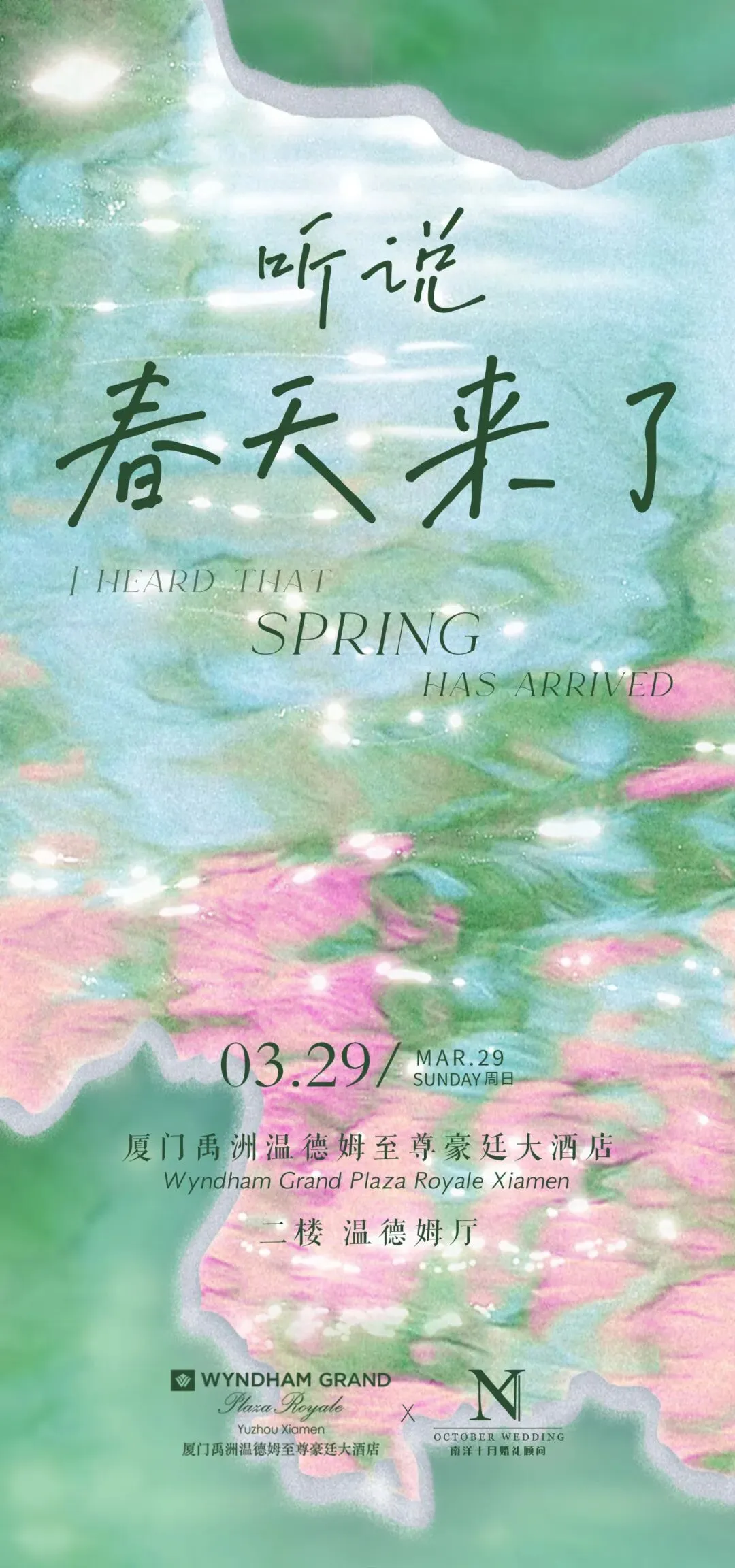 厦门禹洲温德姆至尊豪廷大酒店3月29日将举办婚宴老客户答谢与春季婚礼沙龙活动,即日起至3月31日下定婚宴享专属优惠,现场下定可抽豪华海景房、自助晚餐等丰厚好礼,更有亲子互动、美食体验等精彩环节!