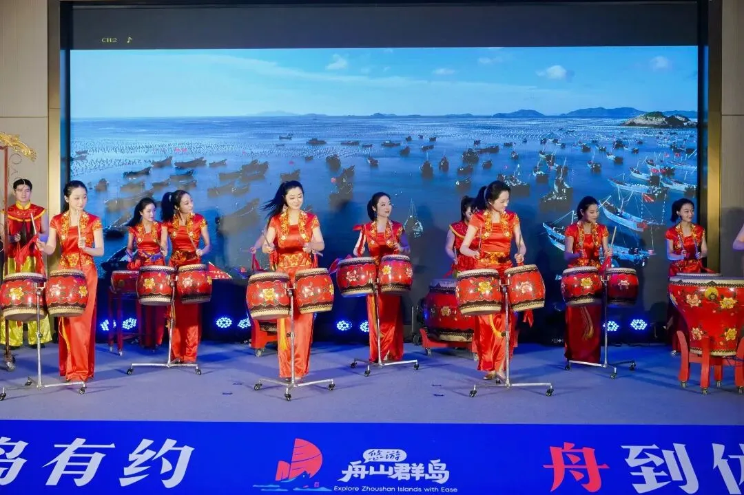 推介会在铿锵有力的舟山锣鼓声中拉开序幕,滚动播放的舟山文旅形象宣传片让与会嘉宾仿佛置身千岛之城,领略碧海金沙、渔火禅音的独特魅力。