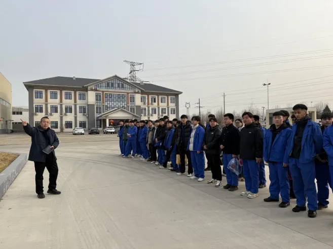 在李军主任、班主任周雪峰老师的带领下,实习队伍踏入企业大门,廉雅静、邓士俭等 5 位骨干教师随行,既护送学生,更以调研员身份深入一线,探寻教学与生产的融合点。该企业是唐山瑞阔有限责任公司新厂区,与我校机电技术应用专业有着深厚校企合作基础,是学子锤炼技能、完成从学生到准职业人蜕变的 “演兵场”,校企合作办宁文军主任、王世伟经理早已到场热情接待,尽显双向奔赴的育人初心。
