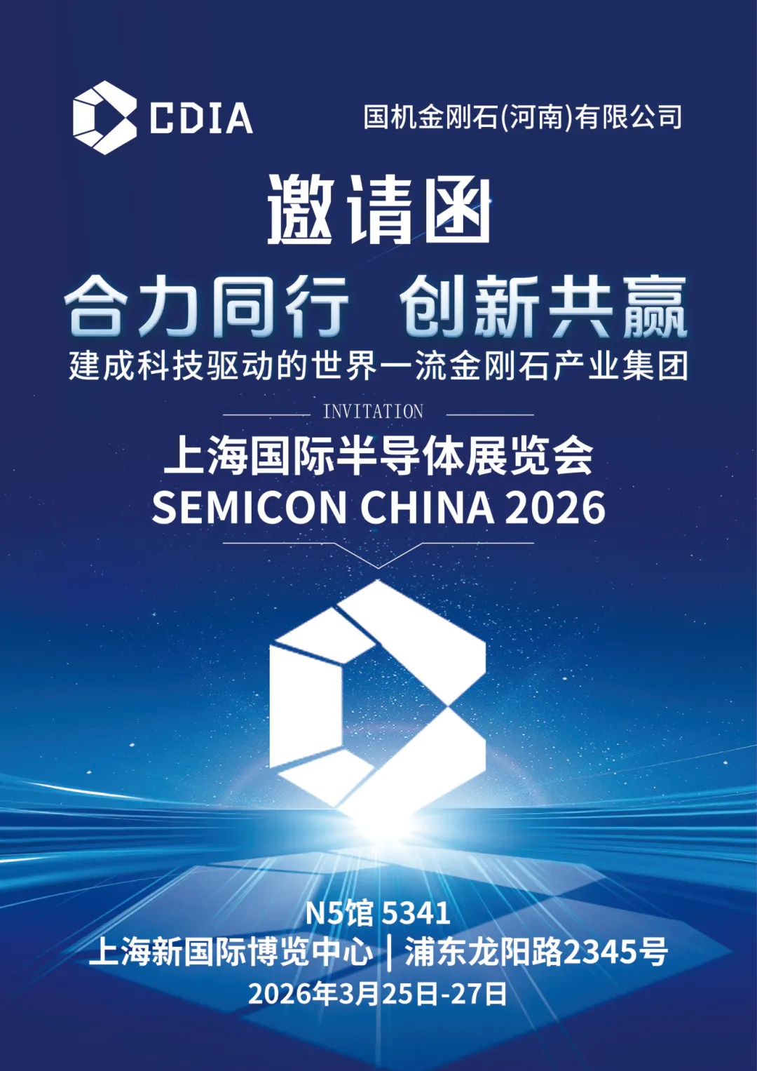 上海国际半导体展会SEMICON China 2026 将于3月25日-3月27日在上海新国际博览中心举行,国机金刚石将携多个下属子品牌亮相展会(展位号:N5-5341)。