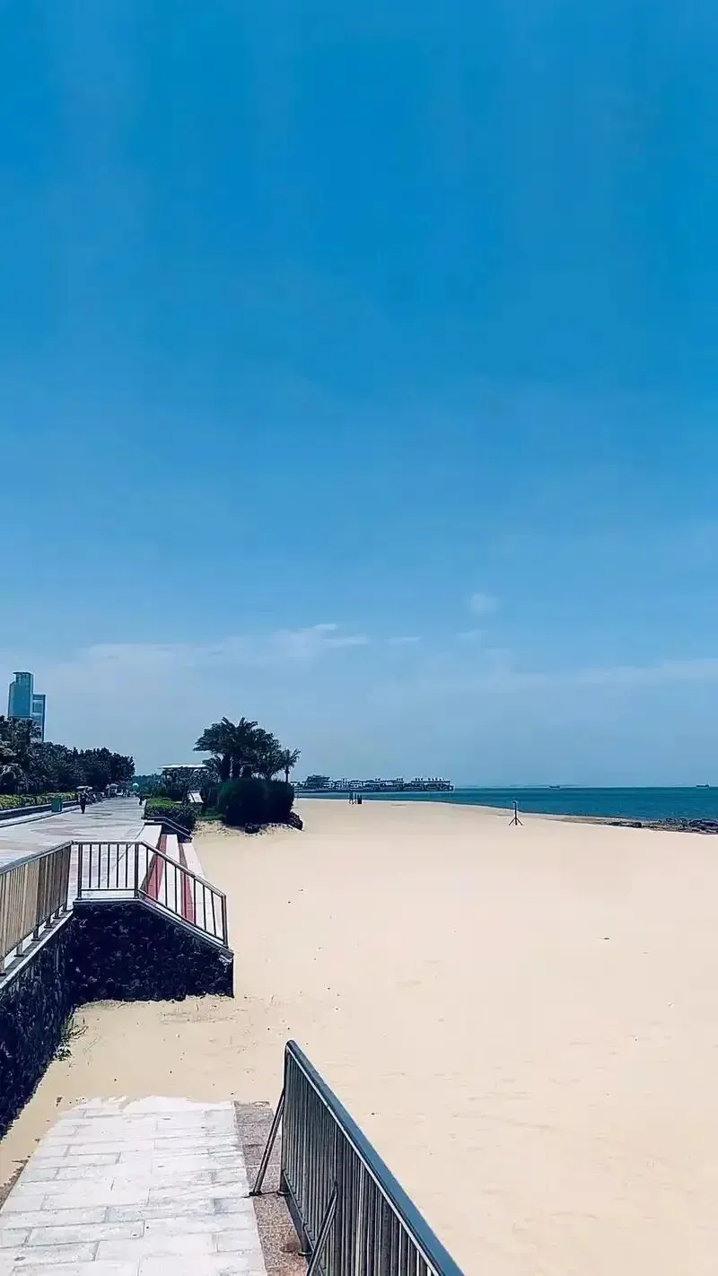 走到广场边缘,能听到海浪拍打岸边的声音.