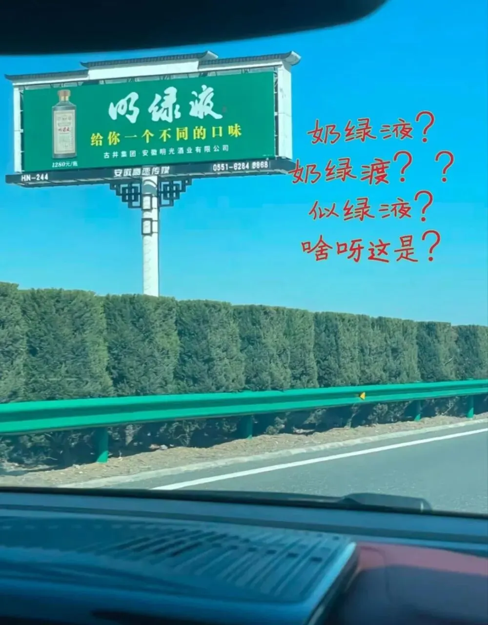 后来大家才知道,这其实是安徽明光酒业的一款高端白酒——“明绿液”。那三个字是书法家的手笔,却被全网读成了奶茶的名字。
