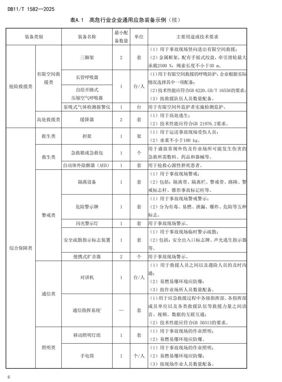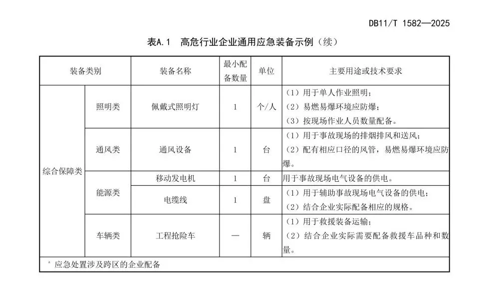 5.1企业应建立健全应急装备管理制度,包括但不限于以下内容:
