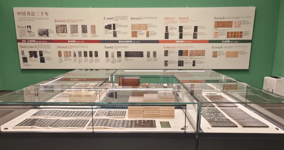 魏晋南北朝时期的展品以墓志为主,展现了楷书形成和发展的重要阶段。《爨宝子碑》《爨龙颜碑》《龙门二十品》《郑文公碑》均是这一时期的代表作品。隋唐时期则是中国书法艺术的鼎盛时期,中国传世最大的碑拓《纪泰山铭》、颜真卿的《颜氏家庙碑》、欧阳询的《九成宫醴泉铭》、虞世南的《孔子庙堂碑》等经典作品共同构建起了唐代书法的巅峰时刻。
