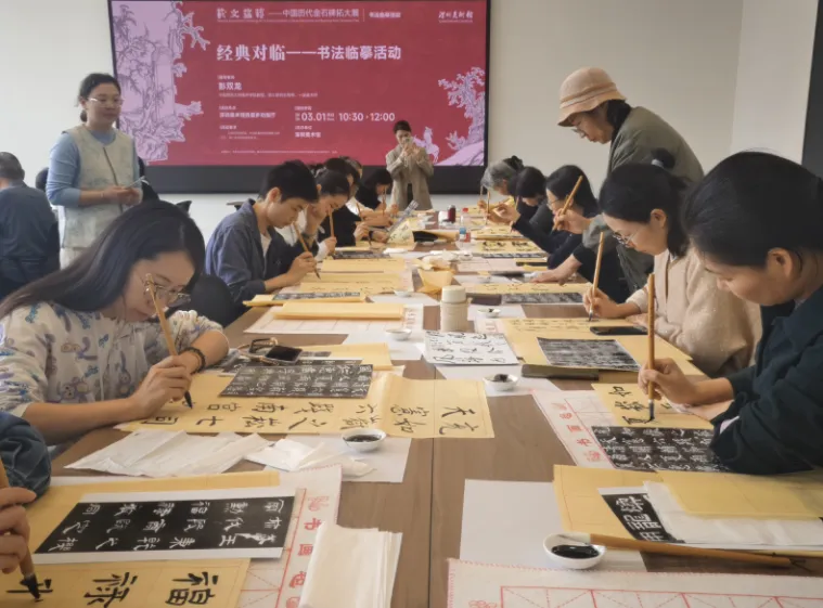展览期间,围绕本次展览打造了多场“策展人导览”、“拓古传今——金石传拓体验”、“经典对临——书法临摹活动”以及“书法、碑拓学术讲座”等活动,形成了多种形式的完整活动体系,吸引了众多观众参加。这些活动不仅丰富了展览的内容,更重要的是为不同年龄层、不同兴趣爱好的观众提供了多样化的参与方式。