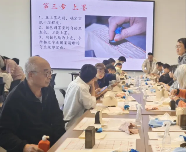 金石传拓研学体验活动则让观众亲身体验传统的碑拓制作技艺。参与者在专业人员的指导下,学习如何将碑刻上的文字和图案复制到纸张上。这种体验活动不仅让观众了解了碑拓的制作工艺,更通过亲手操作,感受到了传统技艺的魅力。