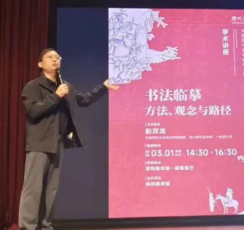 书法、碑拓学术讲座活动则邀请了深圳市书法家协会主席李静先生讲授《碑刻书法的笔墨诠释》,邀请华南师范大学美术学院彭双龙教授讲授《书法临摹方法、观念与路径》。报告厅内座无虚席,观众踊跃提问,气氛热烈,充分凸显了中国书法在市民心目中的重要地位与追捧热度。