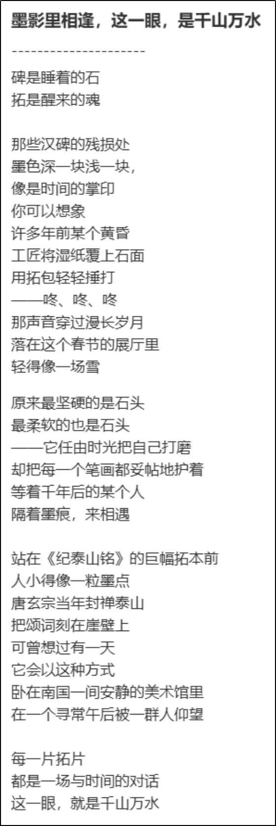 正如展览主题 "载文蕴艺" 所寓意的,金石碑拓承载着文明的记忆,蕴含着艺术的精华。我们有责任也有能力让这些珍贵的文化遗产在保持其历史厚重感的同时,以更加生动、更加亲民的方式走进现代生活,让千年文脉在新时代继续传承和发扬。