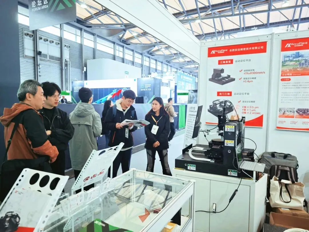 “高精度、高动态响应、专业定制”安迅精密自研产品优势突出,现场活动反响热烈。面对客户提出的关于精度长期稳定性、复杂轨迹运动控制、以及与光学系统集成适配等具体挑战,我们的技术团队在现场进行了卓有成效的沟通与初步方案探讨。
