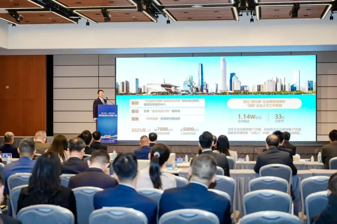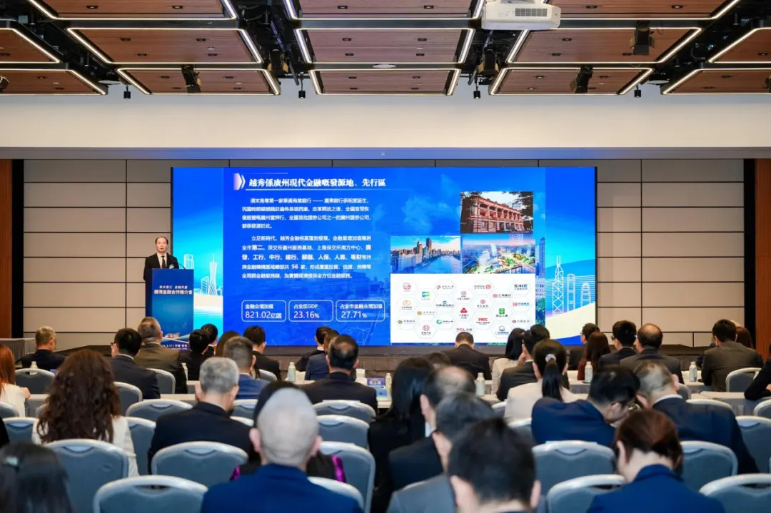 广州金融控股集团有限公司副总经理兼万联证券董事长王达作专题推介,重点介绍了集团作为广州市属金融控股平台所具备的多牌照综合经营优势,展现其在服务实体经济、链接穗港资源等方面的专业能力与务实成效。广州市越秀区副区长陈烯、天河区副区长袁笑一、南沙区副区长杨帆依次登台,分别推介了越秀区、天河区、南沙区作为广州现代金融重点区的区位优势、产业基础和政策支持,向与会嘉宾呈现了广州金融蓬勃发展的生动图景。