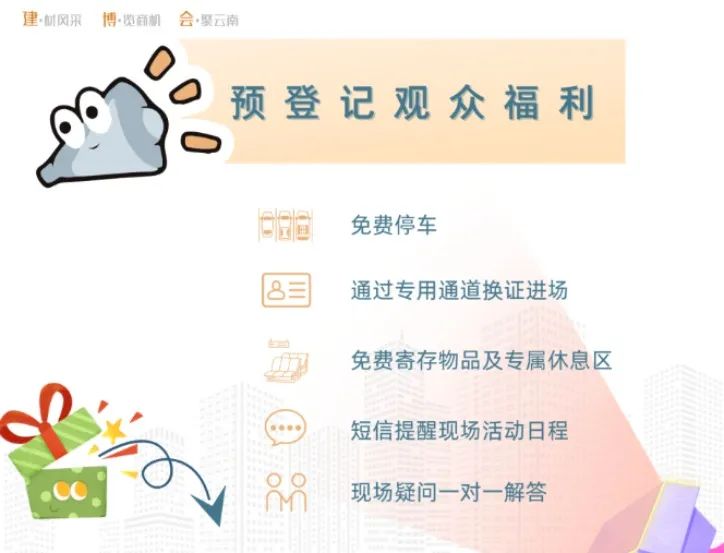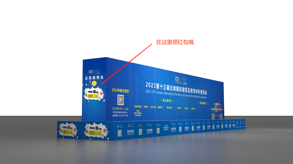 本届云南建博会,所有到场观众都可在7号馆序厅观众接待处旁(箭头指示处)根据领红包流程抽取红包或相关礼品。