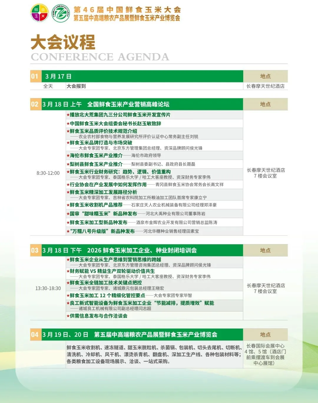3月19日—20日,第五届吉林(长春)中高端粮农产品展暨鲜食玉米产业博览会在长春国际会展中心4、5号馆举办。本届博览会,以“品种决定产业,品质创造效益,风味拓展市场”为主题,品类齐全,涵盖“粮机及食品机械展洽、优质粮食产品展洽、鲜食玉米及相关产品展洽”三大部分,抢占产业先机,实现链式采购,引领产业发展,创造多元价值,亮点纷呈。通过展会平台,进一步扩大相关商业团体、企业机构的知名度和美誉度。同时,为打造长春城市品牌,使更多企业了解长春,助力长春走向繁荣与文明起到积极的推动作用。