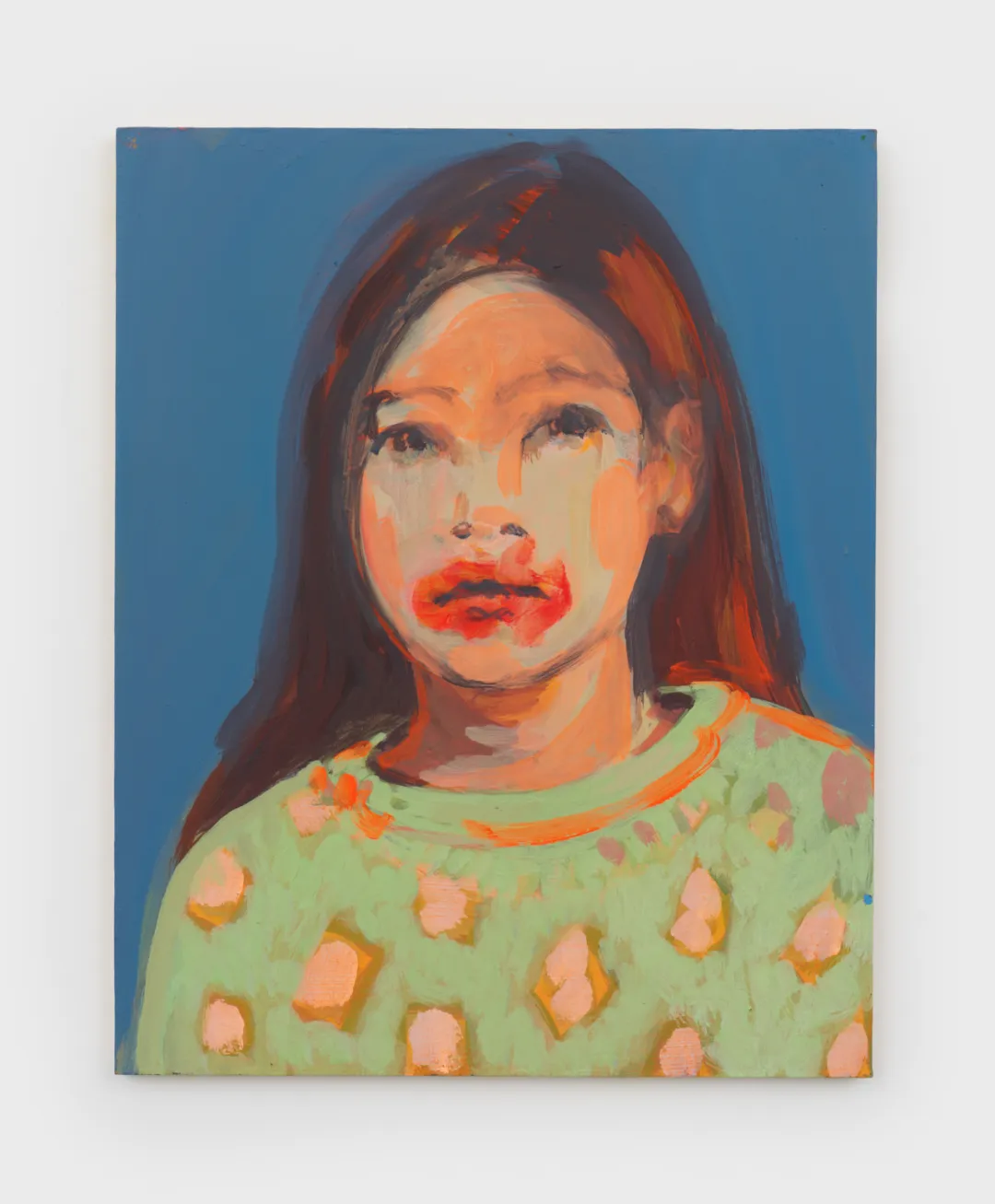 克莱尔·特伯莱. 化妆(绿色与橙色), 2016. 木板丙烯. 50.8 × 40.6 cm. 图片提供:艺术家与贝浩登