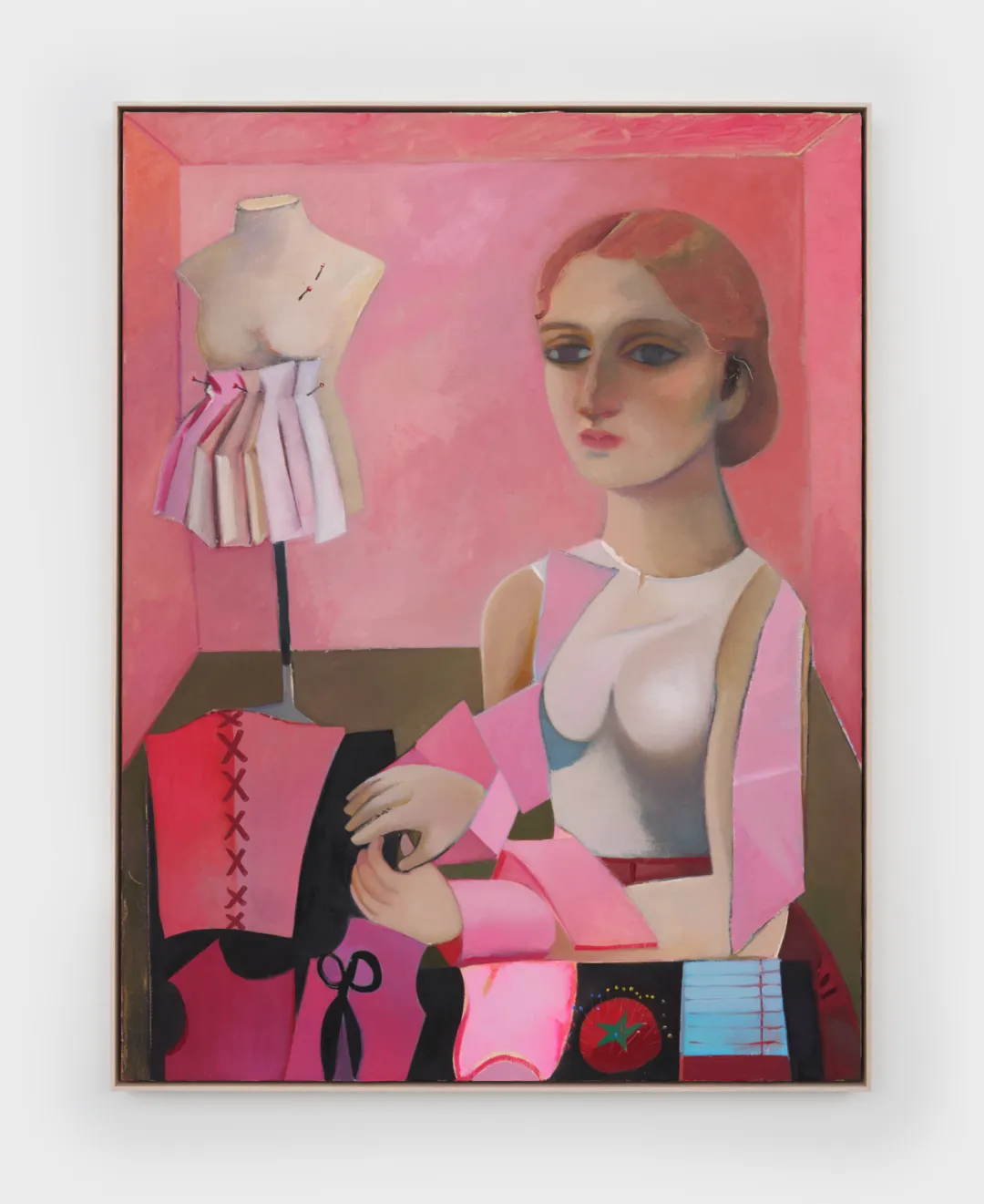丹妮尔·奥查德. 裁缝, 2026. 亚麻布面油画. 139.7 × 106.7 cm. 图片提供:艺术家与贝浩登