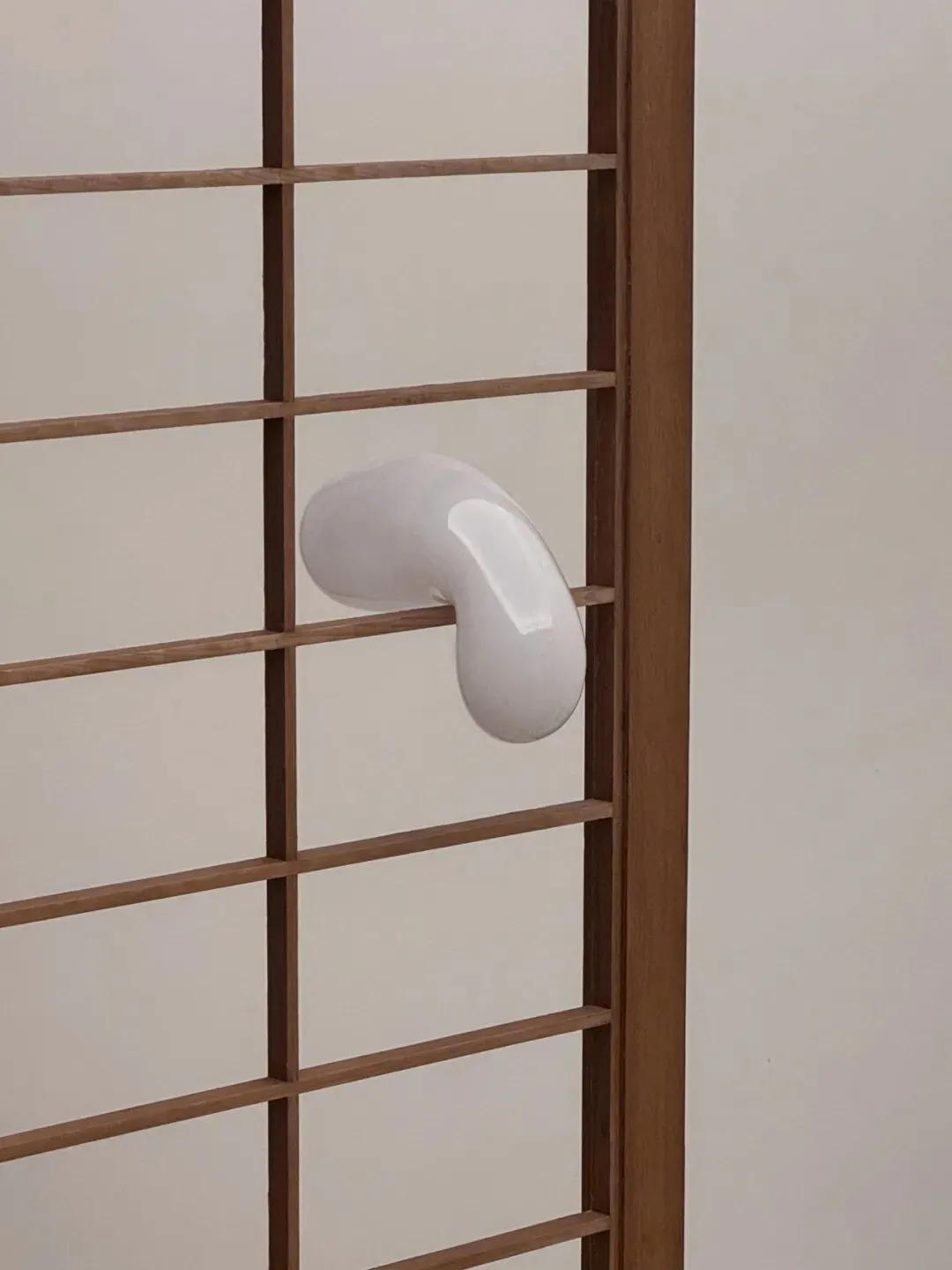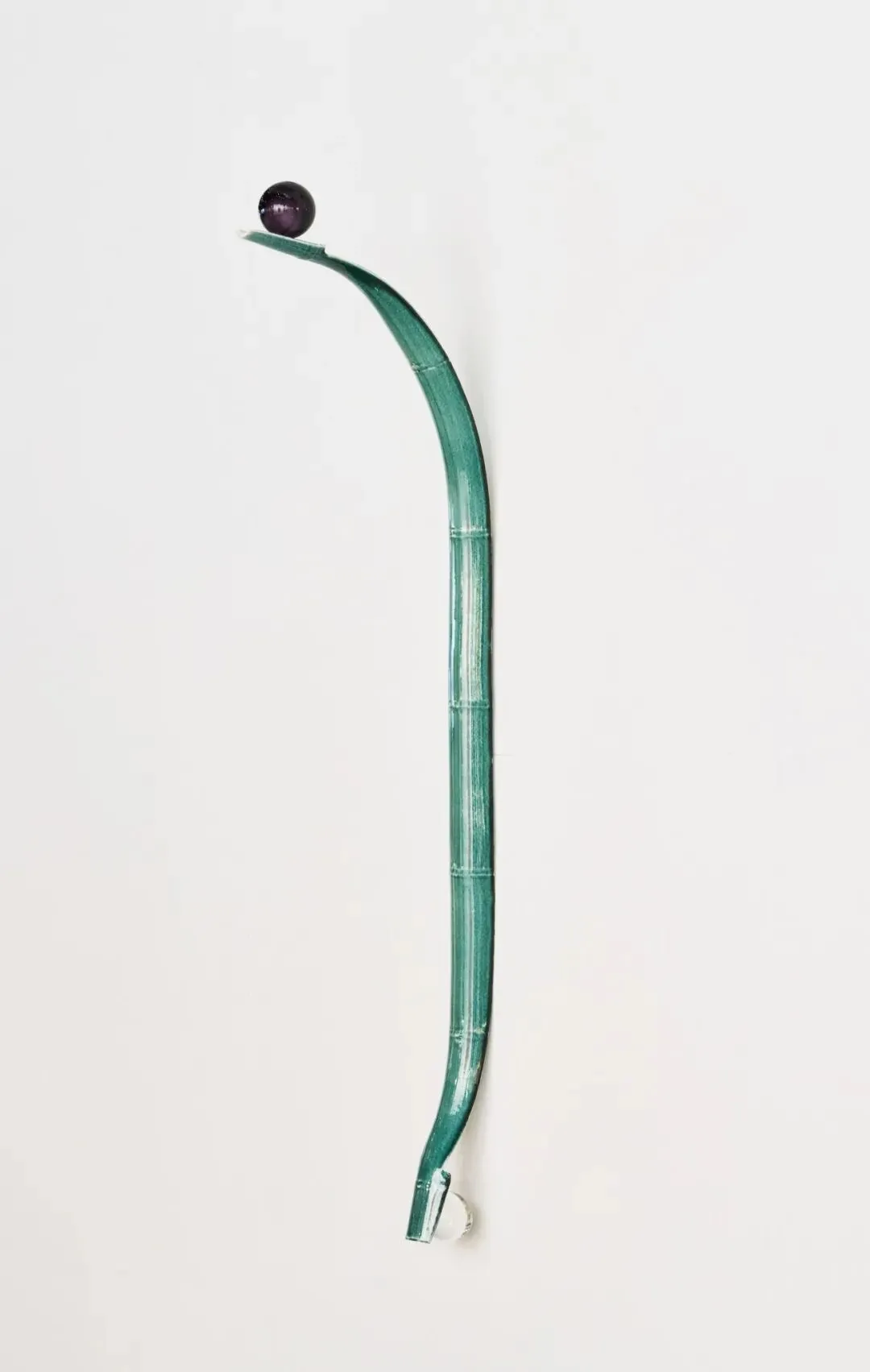 齐倬.平衡球, 2025. 陶瓷、吹塑玻璃. 122 × 32 × 9 cm. 图片提供:艺术家与贝浩登