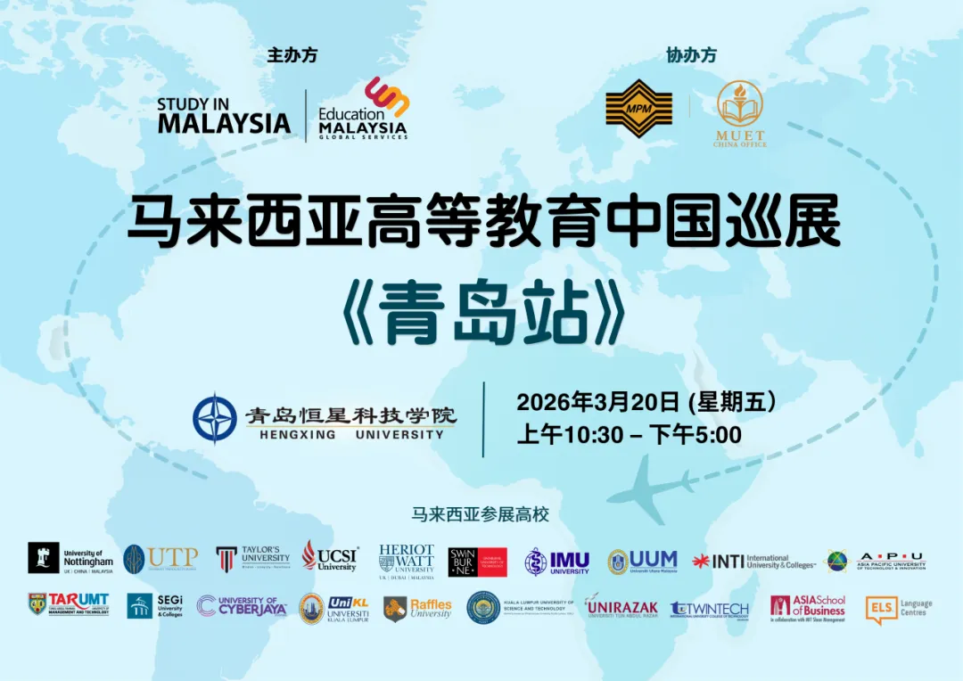 3月20日,由马来西亚高等教育部直属官方机构——EMGS(马来西亚教育全球服务机构)主办的「2026马来西亚官方留学推介会」首站落地青岛恒星科技学院!