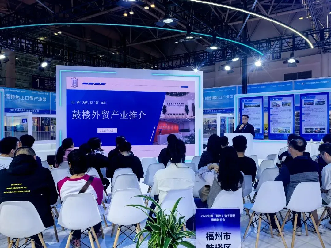 3月 18 日下午,鼓楼区商务局代表鼓楼区亮相 2026 中国(福州)数字贸易招商推介会,通过专场推介全面展现鼓楼区在数字经济、外贸服务等领域的核心优势与发展机遇,向全球客商发出合作邀约。