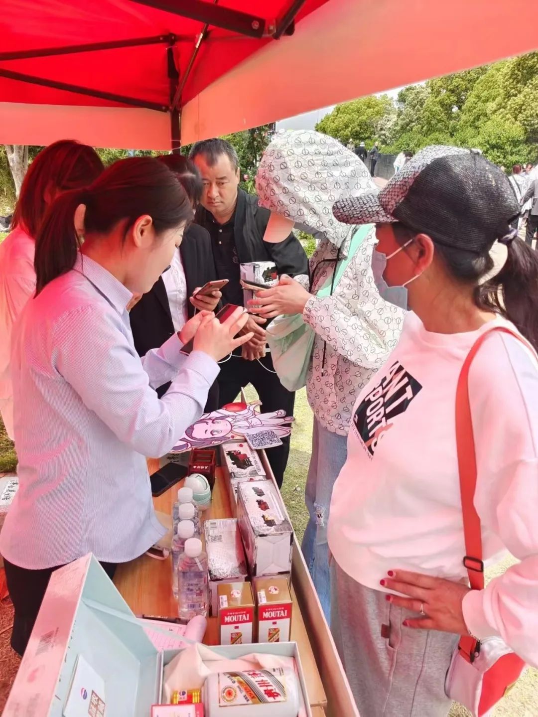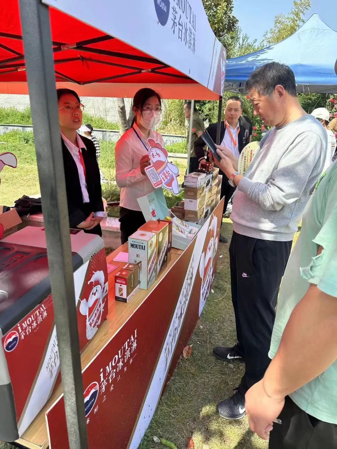 本次活动现场人流量大且密集,工作人员携带相关物料以及冰淇淋一早抵达现场,积极宣传茅台文化理念。为现场活动参与者详细介绍了i茅台APP的文化背景及操作流程。i茅台上不仅有商品,更能了解制作工艺、学习品鉴,感受茅台的风土人情和文化底蕴。从线上走向线下,“i茅台”始终承载着一种文化,代表着一种文化,传播着一种文化。
