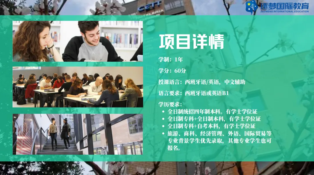 学术要求也十分友好:全日制统招四年制本科、全日制专科 + 全日制本科(有学位证)、全日制专科 + 自考本科(有学位证)均可申请;旅游、商科、经济管理、外语、国际贸易等专业背景优先录取,其他专业同学也能放心报名,几乎覆盖大部分留学党背景,申请门槛超友好。