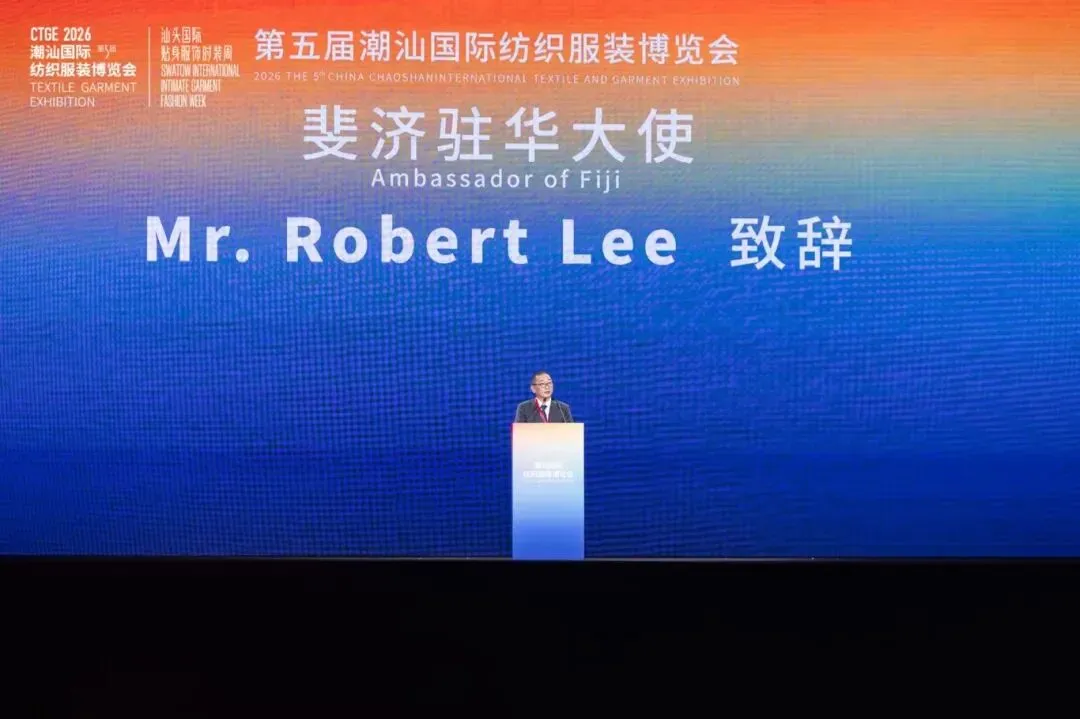 斐济驻华大使李振凡在致辞时表示,汕头坚实的产业根基、澎湃的创新活力、深厚的人文底蕴、开放的城市品格,令人印象深刻。当前,斐济及南太平洋周边国家对高品质纺织服装产品有着火热消费需求与广阔市场空间。期待以本届服博会为契机,携手探索经贸合作新机遇,深化斐济与汕头在纺织服装产业的合作,让更多“汕头织造”走进斐济及南太平洋地区市场。