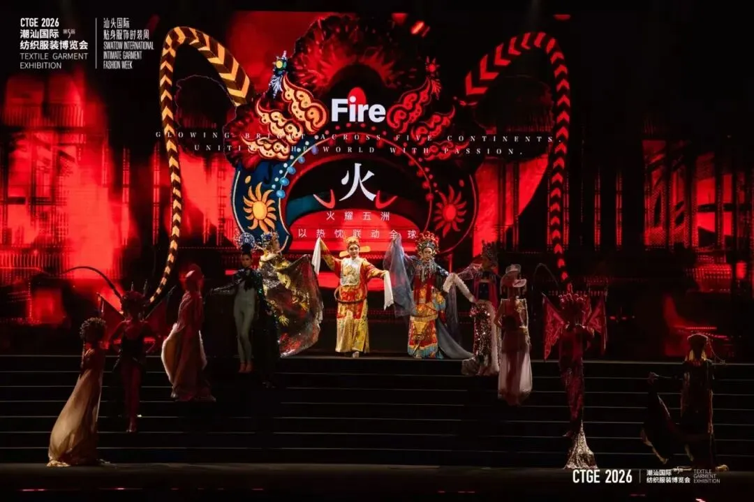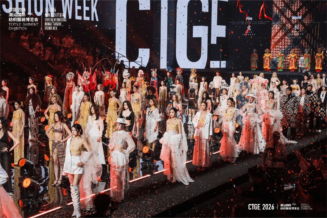 第五届潮汕服博会开幕秀潮起东方5.0以《五行共潮生》为主题,以品牌共创的形式,在光影流转间,诉说纺织服装文化的当代活力。