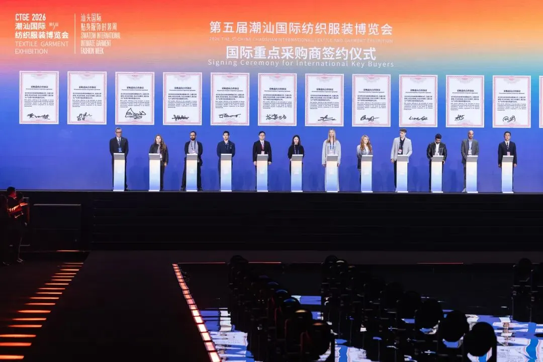 本届潮汕服博会现场同步举行系列重点采购商签约仪式,为汕头纺织服装产业注入强劲动能,未来将持续强化弹力面料核心竞争力,深耕绿色可持续发展赛道,筑牢产业发展新优势。截至目前,已有 50 余家国内外头部采购商与汕头产业集群企业达成意向采购合作,这份亮眼的成绩单充分彰显了潮汕纺织服装产业强劲的市场吸引力与蓬勃发展活力。