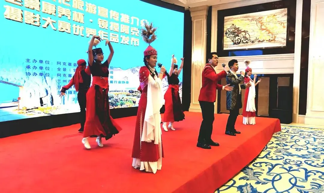 同时,公司还发布景区优惠政策,给游客带来实实在在的福利,进一步激发旅游热情。此外,活动现场还穿插了精彩的哈萨克歌舞节目,让与会人员沉浸在浓郁的民族风情中。会上,还向摄影大赛获奖者颁发了证书,一幅幅优秀摄影作品展示了阿克塞的独特魅力。