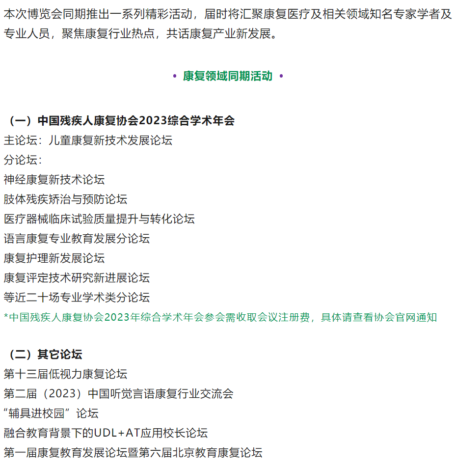 为提供更高水平的康复服务,满足日益增长的市场需求,2023中国国际福祉博览会暨中国国际康复博览会(2023年5月21-23日,北京首钢会展中心)将于展会现场设置“康复展区”,并举办一系列康复相关同期活动,紧贴行业需求,为企业搭建技术推广平台,为专家搭建学术交流平台,为用户搭建采购服务平台。