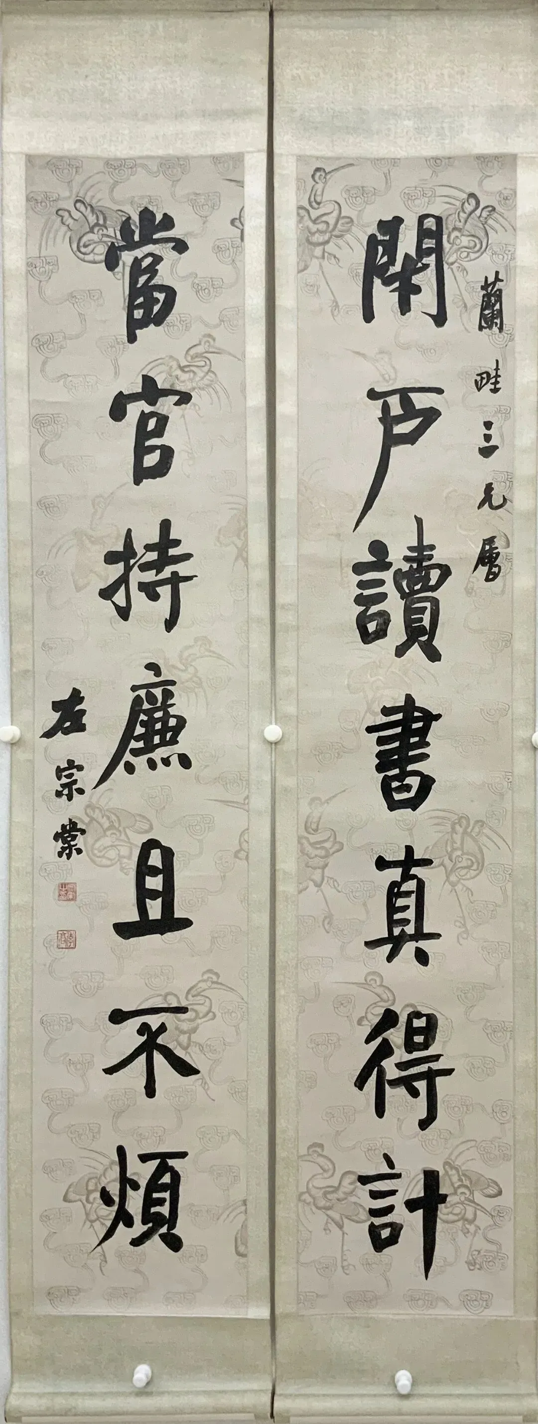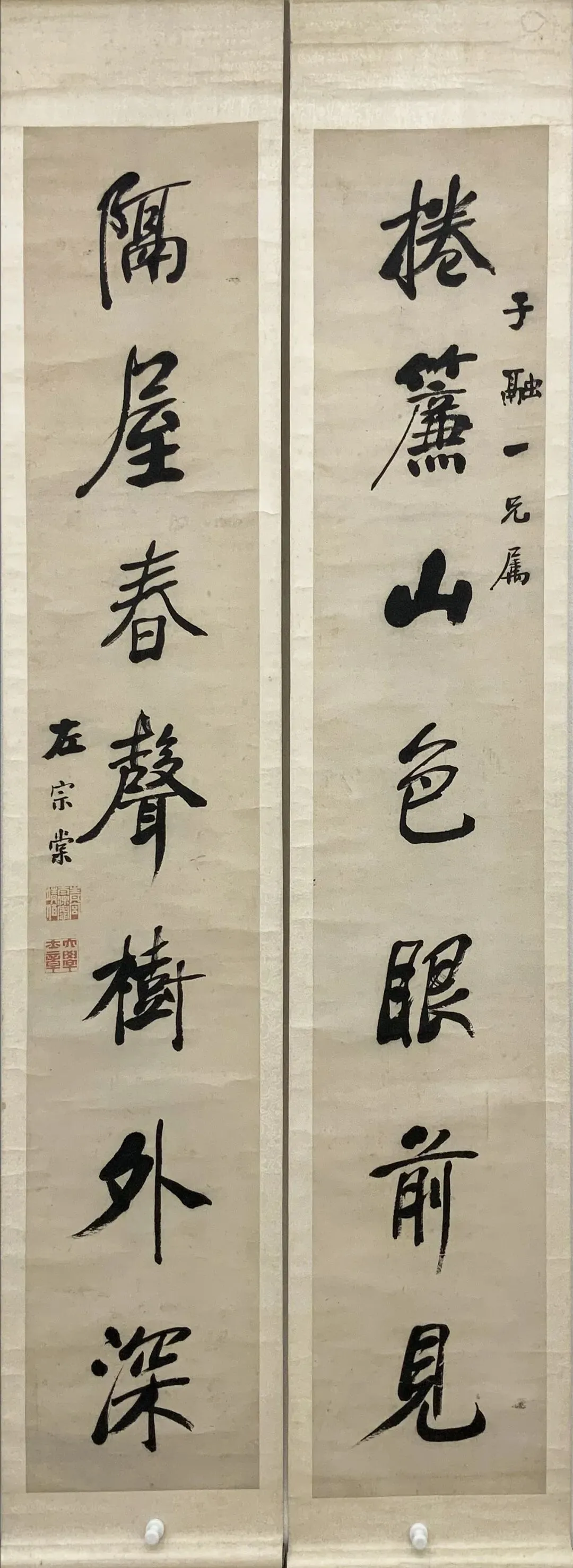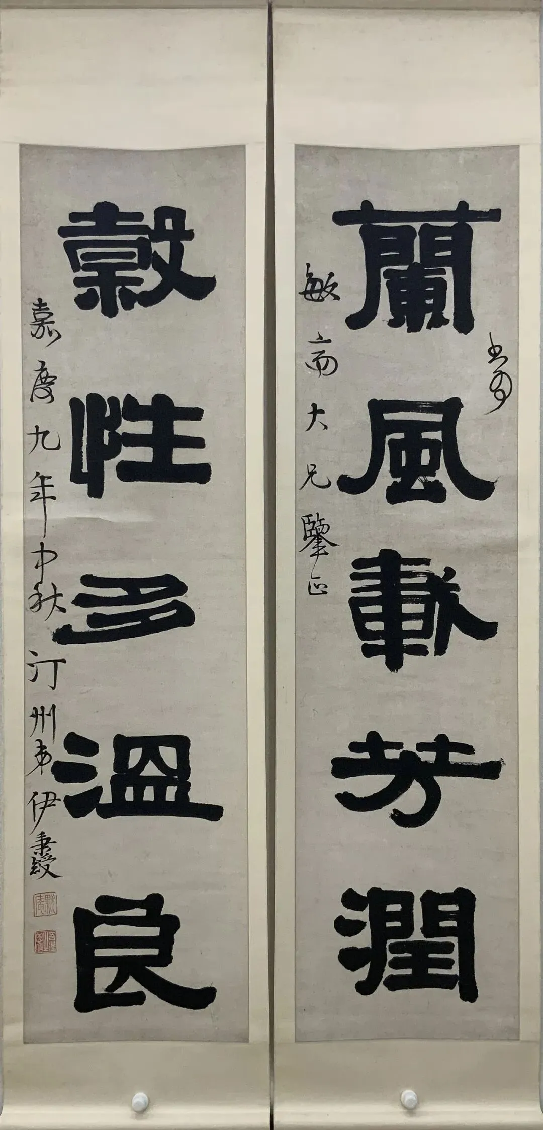 此番陈列,上追乾嘉朴学之雅正,下及近世碑帖融合之变奏。观郑板桥之兰竹逸气,奇崛傲骨;抚刘墉之浓墨宰相,浑厚华滋;感翁方纲考据之严谨,金石铿锵;味王文治秀逸之风致,云水禅心。至于何绍基回腕运笔,沉雄恣肆;伊秉绶隶法独辟,古穆渊雅。更有晚清中兴名臣如曾国藩之沉稳、李鸿章之劲健、左宗棠之豪迈,虽政事纷繁,笔下犹存凛然风骨。及至民国,风云际会,书风丕变。吴昌硕以石鼓文开宗立派,苍茫老辣;于右任标举“标准草书”,旷达不羁;马一浮融经入书,孤神独逸。沈曾植、沈尹默、白蕉诸家,或北碑南帖兼收,或晋韵唐法并重,于乱世中守文脉之正传。而弘一法师晚年书风,由绚烂归于平淡,字字如偈,直指本心,令人观之忘俗。展中亦可见赵朴初、郭沫若、黄宾虹、李可染、刘海粟等艺苑通才,其书卷气与画意相得益彰。康有为、郑孝胥、陈宝琛、刘春霖等,或以变法维新之气魄入书,或以状元宰相之锦绣成章。至于曾熙、宝熙、张伯英、溥儒、吴湖帆、启功、谢稚柳、陈佩秋、唐云等近当代名家,更是各擅胜场,从碑版金石到帖学风流,从文人雅趣到家国情怀,无不在此凝结成可视可感的笔墨篇章。