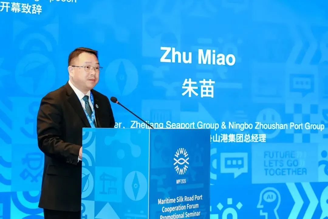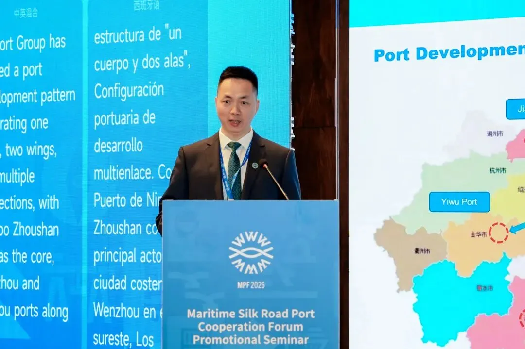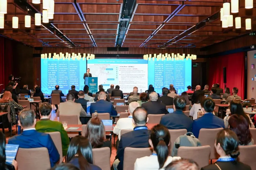 在业务推介环节,浙江省海港集团、宁波舟山港集战法部主任蔡琳琳,安全部主任吕以强和温州港集团有限公司董事长朱瑞团围绕“海上丝绸之路港口合作论坛”进行了专题介绍,并重点展示宁波舟山港和温州港的发展优势、运营能力及国际合作成果,充分展现中国港口在全球航运体系中的重要地位与发展潜力。