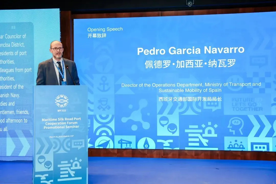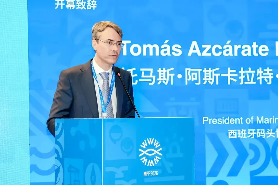 中国驻西班牙兼驻安道尔大使姚敬,西班牙交通与可持续发展部代表佩德罗·加西亚·纳瓦罗(Pedro García Navarro),西班牙码头协会主席托马斯·阿斯卡拉特(Tomás Azcárate Díaz de Losada),以及浙江省海港集团、宁波舟山港集团代表朱苗等嘉宾分别致辞。与会各方表示,在全球供应链重构与国际贸易格局变化背景下,加强中欧港口合作具有重要意义,应进一步推动基础设施互联互通与物流效率提升,实现互利共赢。